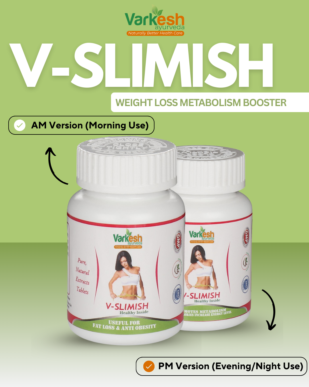 At Varkesh Ayurveda, we strive to present the benefits of our product тАЬV-Slimish (Healthy Inside)тАЭ honestly and transparently. However, individual results may vary. Your outcomes depend on several factors such as body type, diet, exercise, lifestyle, metabolism, and consistency. We do not guarantee any specific amount of weight loss or health improvement.